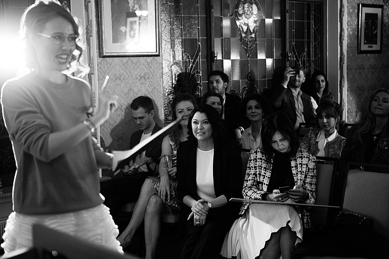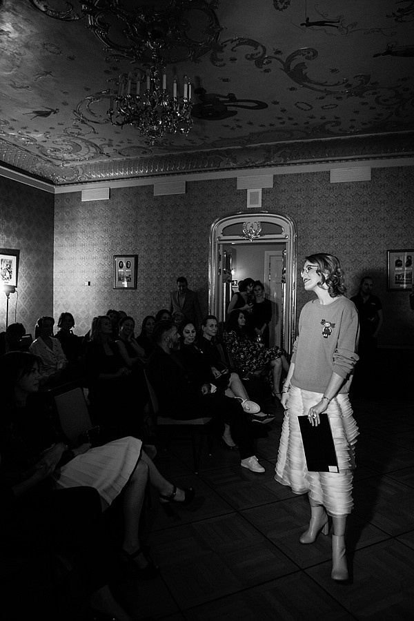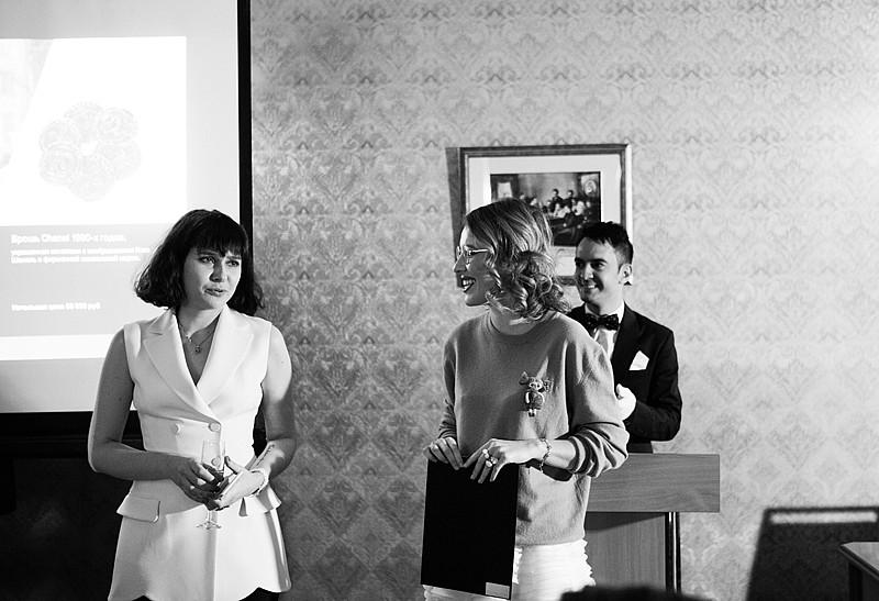 Vintage Voyage presented several items for the auction: a set of collectible clip-on earrings and a brooch, all Chanel, a very rare Rolex watch decorated with diamonds, a crocodile Hermès Constance bag, and a couture Chanel jacket made exclusively for Jeffie Pike Durham and tailored by Coco Chanel herself. Part of the proceeds went to "BELA" Fund that supports "butterfly children" and their families in their battle against a very severe genetic decease, Epidermolysis bullosa. Under the thoughtful eye of the auctioneer Ksenia Sobchak the lots sold like hotcakes. Even the guests joined in, with Alla Verber setting the example by donating her vintage Dolce&Gabbana brooch for a good cause. At the end on the evening the fund's founder Kseniya Rappoport thanked everybody for a great auction and invited the guests to her next charity event that will take place at the end of April.